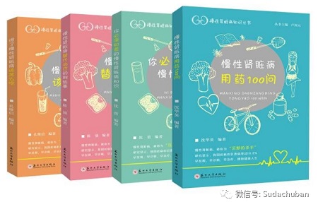 “慢性肾脏病知识丛书”共四册,分别是《慢性肾脏病用药100问》《你必须知道的慢性肾脏病知识》《慢性肾脏病替代治疗的那些事》《得了慢性肾脏病该怎么吃》。