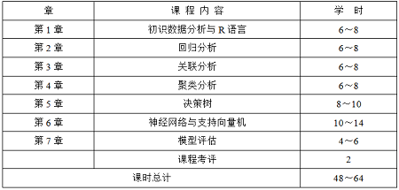 本书采取务实的方法介绍了如何使用R语言来实现数据分析。全书共7章,每章包含若干小节。本书的参考学时为48~64学时,建议采用理论实践一体化教学模式,各章的参考学时如下: