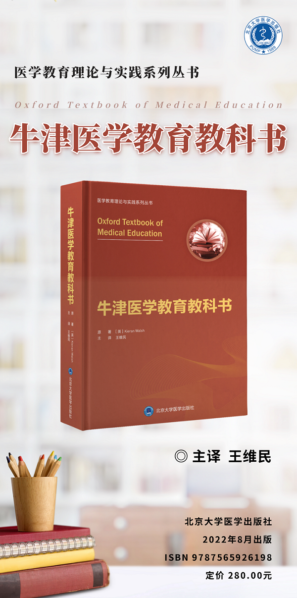 该书于2013年由牛津大学出版社出版。由BMJ Learning主任Kieran Walsh担任主编,来自全球16个国家的110余位专家参与编写。全书包括12个部分、60章,涵盖医学教育领域的各个方面,每一章均包含相关教育理论、已有证据以及在医学教育实践中的应用,是医学教育管理和实践的一部全面指南,也是进入医学教育学术和研究领域的高阶入门教材。本书适用于医学教师、医学教育管理者、医学教育研究者和医学教育专业的研究生。