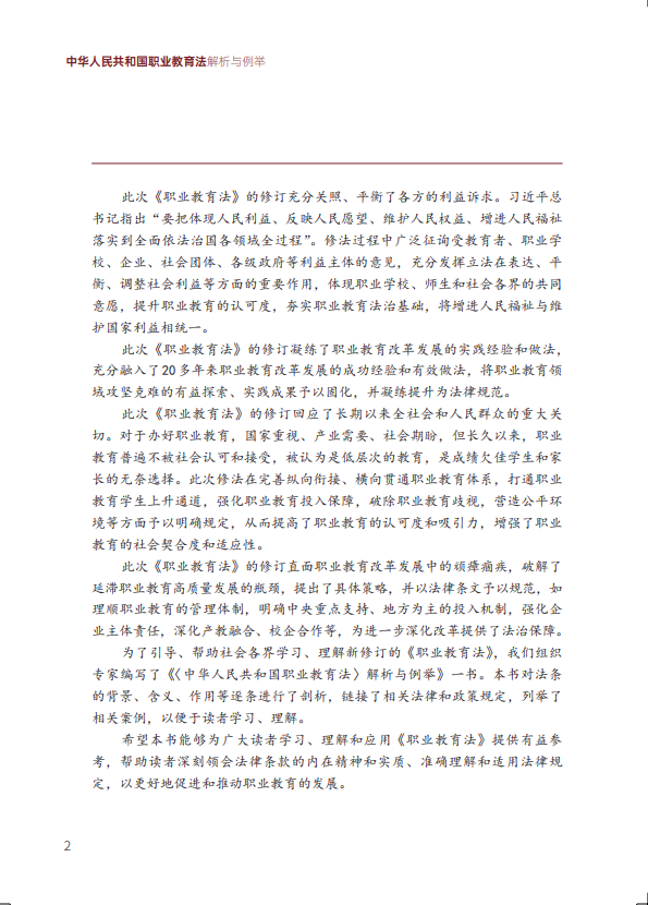 本书主编为《中华人民共和国职业教育法》(以下简称《职业教育法》)修订工作的参与者,编写团队均为职业教育领域专家,具备很强的专业性。