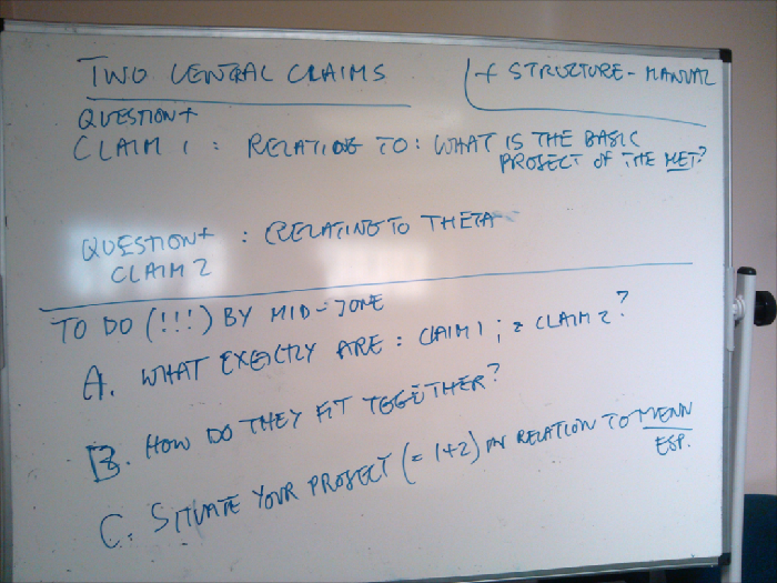 正是在这块白板上,希腊文本的结构被“庖丁解牛”;上图拍摄于2015年,是讨论本书最后一章内容的记录。