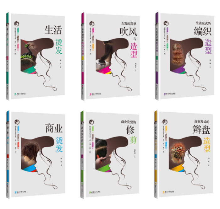 “职业教育美发专业系列教材”共6本,涉及职业教育美发专业基础课程和核心课程,分别为:《生活烫发》《头发的简单吹风与造型》《生活发式的编织造型》《商业烫发》《商业发型的修剪》《商业发式的辫盘造型》。