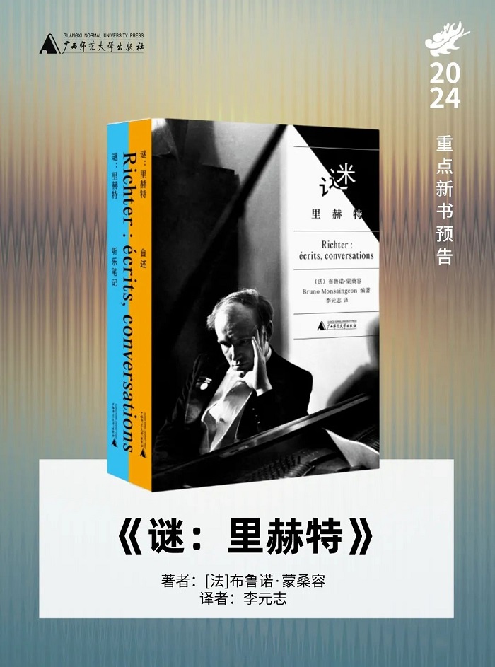 《里赫特影像》:收入里赫特全彩照片42幅,由蒙桑容提供,多数为独家呈现,是供爱乐者欣赏、收藏的影像图册,车线装订,可裁下任意一页装入镜框摆放。