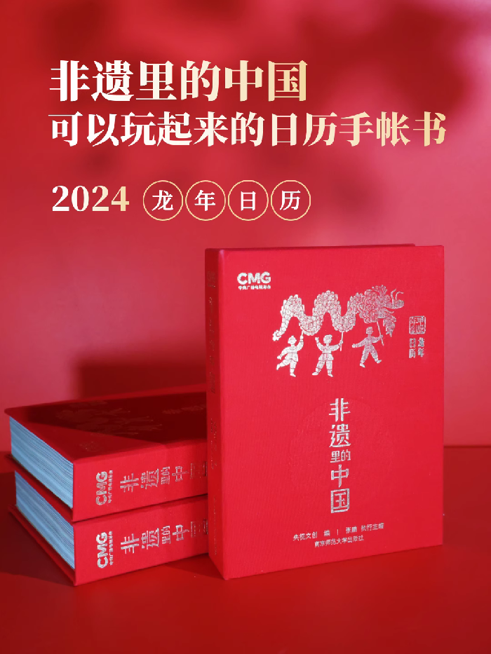 南京师范大学出版社与中央广播电视总台强强联手,合力打造《非遗里的中国》龙年日历,作为中央广播电视总台2024龙年“大春晚季”版权文创,在龙年伊始吹响非遗传承的号角。