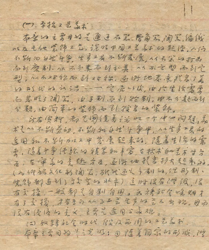 陈之佛撰写的《中国工艺美术史(从原始社会至清代)编写提要》手稿(部分)