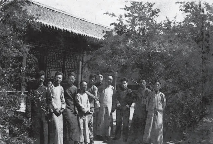 1935 年春,殷墟第十一次发掘,同仁合影 左起:王湘、胡厚宣、李光宇、祁延霈、刘燿、梁思永、李济、尹焕章、夏鼐、石璋如。