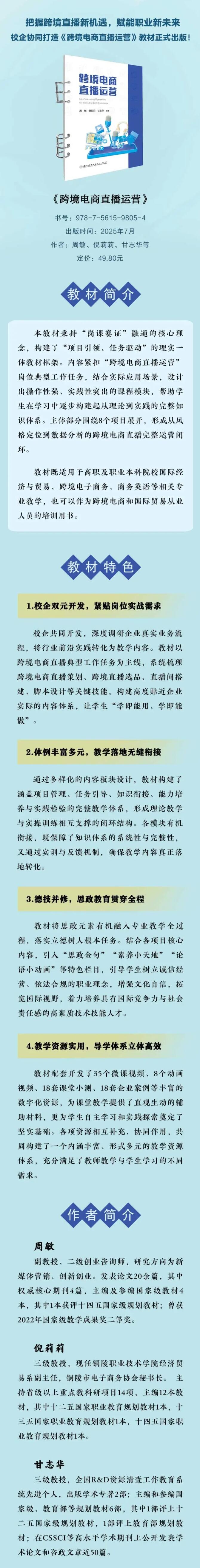 把握跨境直播新机遇,赋能职业新未来——校企协同打造《跨境电商直播运营》教材正式出版(厦门大学出版社)