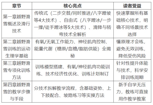 现在,由西南大学出版社出版的《越野滑雪专项训练教学教程》重磅来袭!一本覆盖“技术+生理+训练+教学”的全维度指南,让你从“入门小白”到“赛道高手”,彻底告别盲目练习!