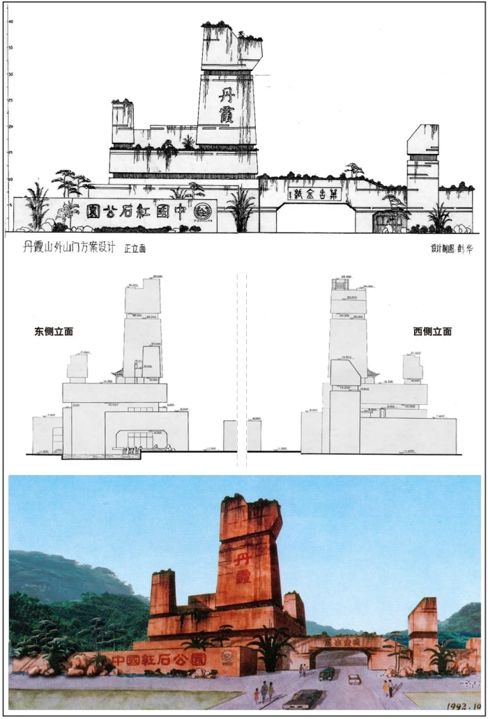 1992年,彭华为丹霞山设计绘制的新山门设计稿