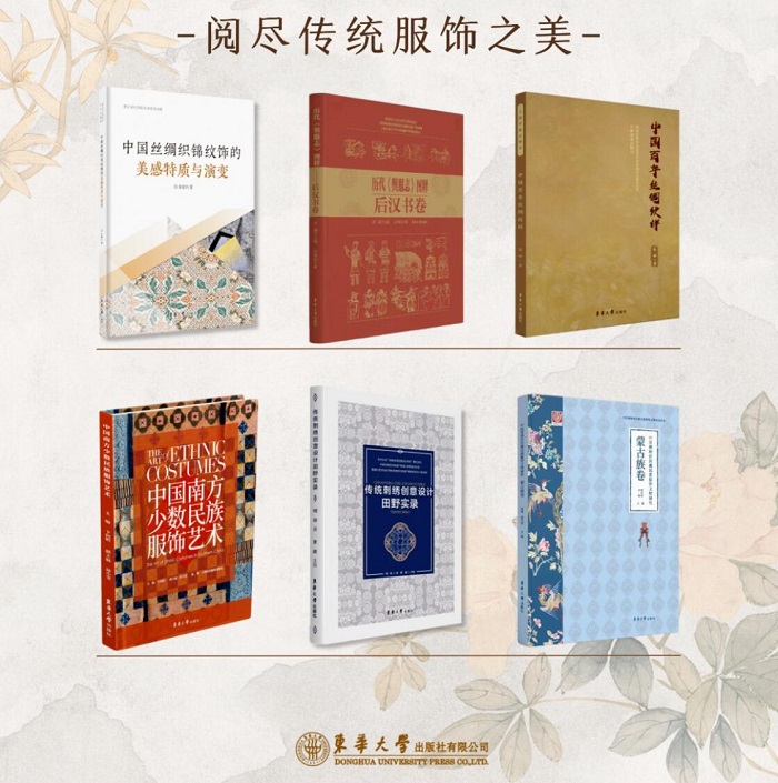 东华大学出版社社长陈珂推荐传统服饰主题书单,本书单包含6种图书,分别是:《中国丝绸织锦纹饰的美感特质与演变》《历代<舆服志>图释·后汉书卷》《中国百年丝绸纹样》《中国南方少数民族服饰艺术》《传统刺绣创意设计田野实录》《中国博物馆馆藏民族服饰文物研究·蒙古族卷》,带你纵览古今服饰,探索民族特色,领略中式审美的无尽宝藏……