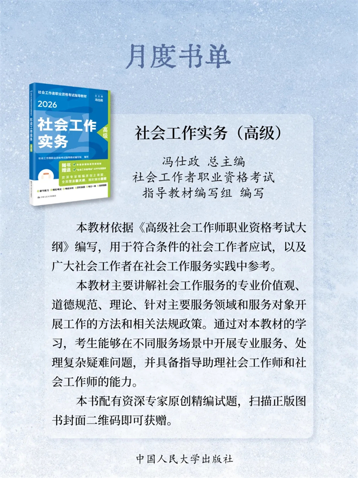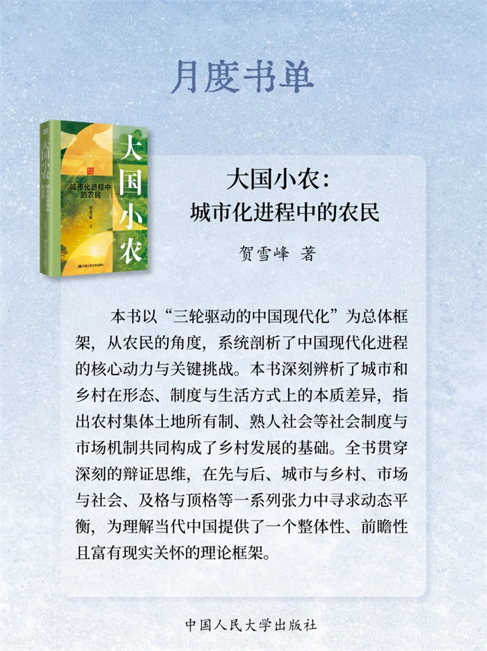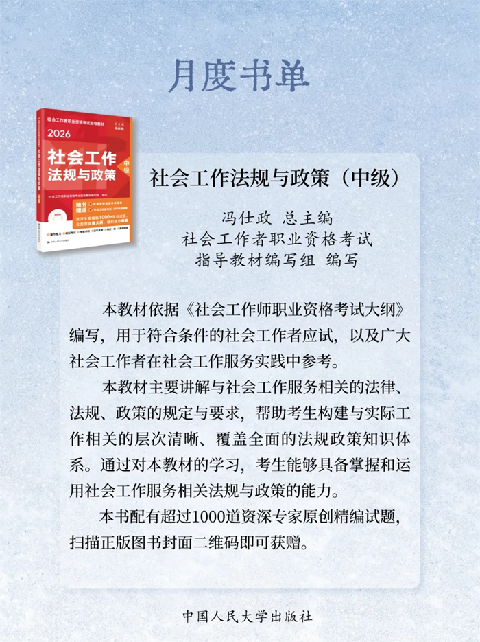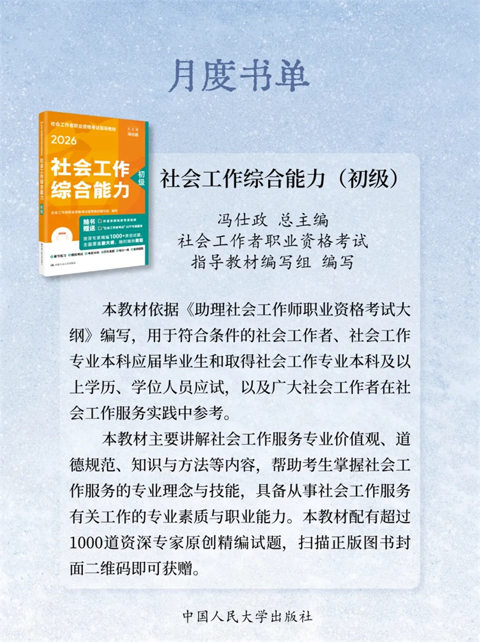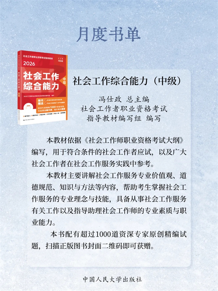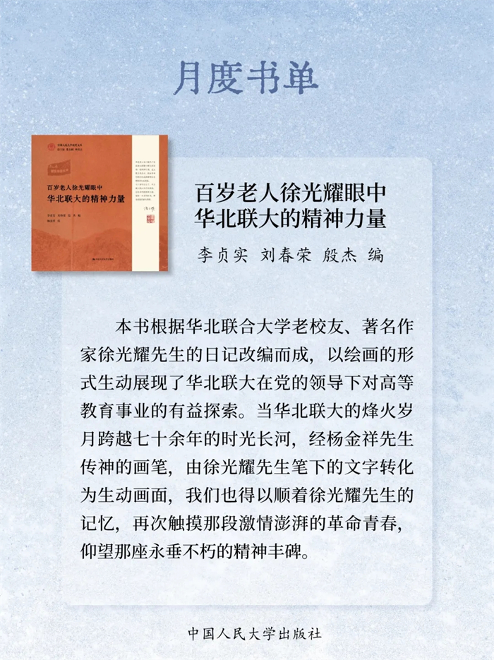 岁末将至,书页翻卷间藏着整年的沉淀与对未来的期许。2025年12月,中国人民大学出版社精选23本新书:《自信自立:党的创新理论体系化学理化研究》《守正创新:马克思主义理论学科学术研究》《启智润心:思想政治理论课教育教学研究》《百岁老人徐光耀眼中华北联大的精神力量》《乐黛云集》《中国财政学》《新时代中国特色干部教育学自主知识体系建构》《世界汉学(第18卷)》《世界政治史(三卷本)》《新时代中国特色教育系统干部培训体系建设》《干部教育培训体系的国别研究》《社会工作综合能力(初级)》《社会工作实务(初级)》《社会工作综合能力(中级)》《社会工作实务(中级)》《社会工作法规与政策(中级)》《社会工作实务(高级)》《康德的自由构想》《敦煌学概论(修订版)》《游牧民世界史:人类文明的另一个侧面》《烈焰玫瑰:巴塞罗那的自由与激情》《大国小农:城市化进程中的农民》《相亲:婚恋选择与新女性》,陪您一起迎新过冬!