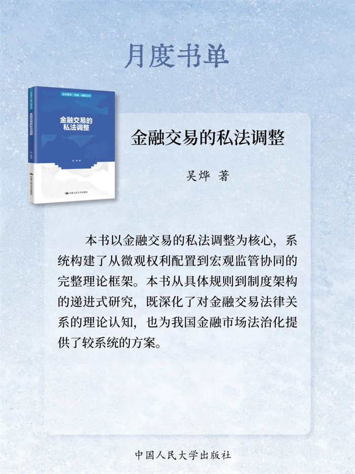 岁末将至,书页翻卷间藏着整年的沉淀与对未来的期许。2025年12月,中国人民大学出版社精选18本新书:《中国式现代化的法治逻辑》《数字营商环境法律制度研究》《涉外法治的力量》《金融交易的私法调整》《卓越风险管理:从合规到价值创造》《职场沟通别掉链子》《AI创收:让业余时间变成现金流》《理性情绪行为疗法(第二版)》《小说写作入门》《高效服务运营力:省时省力省钱的AOM法》《精简表达力:少说废话,一句顶万句》《树木人格测试与分析(第7版)》《我的内心,是薛定谔的猫:改变心理世界的物理规律》《人生如逆旅,我亦是行人:30个人生困局的社会心理学答案》《像律师一样思考:写给青少年的批判性思维高阶训练(第2版)》《鲜活的研究:影响心理治疗的28位大师》《重构语文课堂:学习任务群与单篇教学转型十讲》《我是你的同学:上一堂有生命力的语文课》,陪您一起迎新过冬!