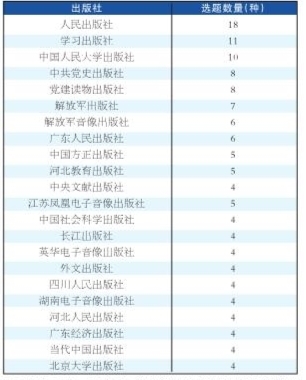 二是资源向头部出版社倾斜,强者愈强的出版格局正在形成。记者注意到,在2016~2019年的三大主题出版项目/规划名单中,有图书选题同时入选两种项目,尚未有选题同时入围三大项目。据统计,同时入选“十三五”国家重点图书·主题出版规划与主题出版重点出版物的选题数量有18种,包括学习出版社的《习近平新时代中国特色社会主义思想三十讲》《习近平新时代中国特色社会主义思想学习纲要》等。同时入选“十三五”国家重点图书·主题出版规划与全国高校出版社主题出版选题的有2种,分别是江西高校出版社的《人民的胜利——新中国是这样诞生的》、上海交通大学出版社的《中国改革再出发》。同时入选主题出版重点出版物与全国高校出版社主题出版选题的有3种,分别是中国人民大学出版社的《时代大潮和中国共产党》《中共党史重大问题研究》,教育科学出版社的《中华十大家训》。这些选题紧跟时代热点,切中时代脉搏,体现了三大项目的关切。