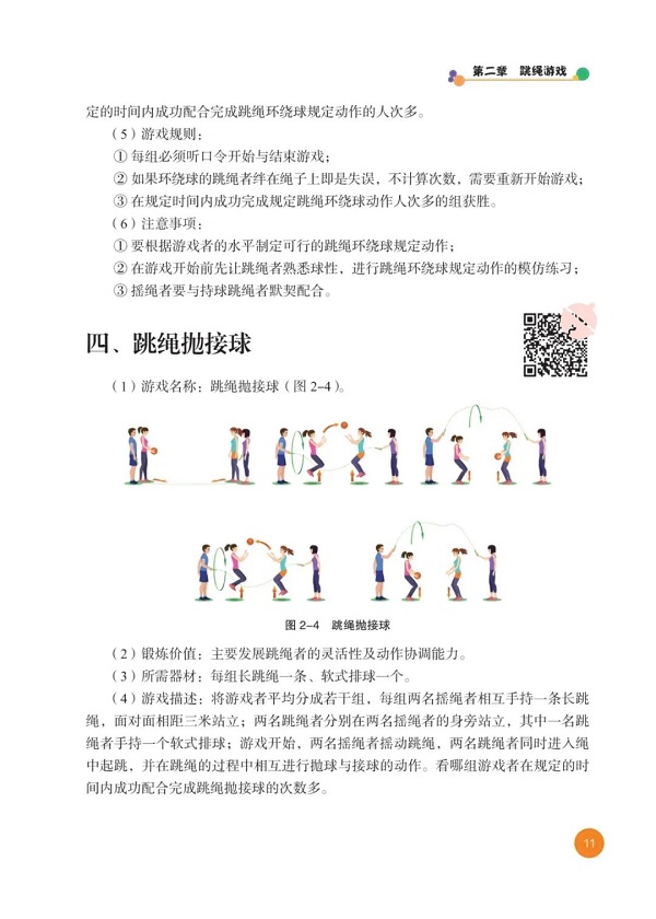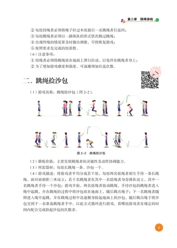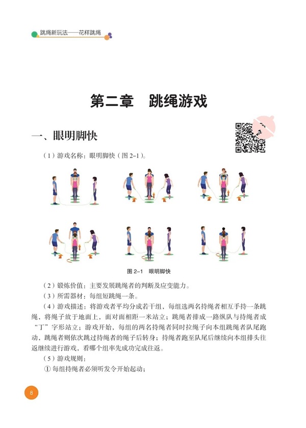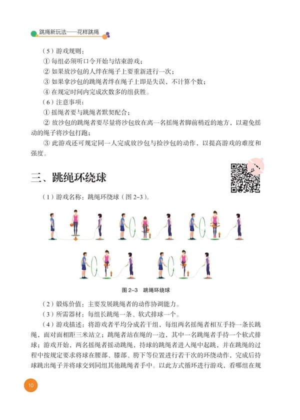《跳绳新玩法——花样跳绳》是为贯彻落实教育部关于《国家中长期教育改革和发展规划纲要(2010—2020年)》开发的花样跳绳教学资源。随着我国素质教育的深入开展,各级教育部门越来越重视学生的体质和全面提高学生的身体素质。本书由北京石油学院附属小学学生进行花样跳绳动作示范拍摄视频,并通过视频进行跳绳动作绘图。