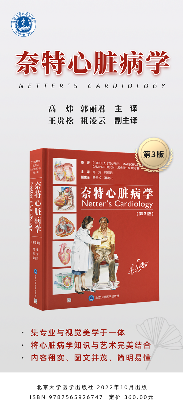 对心血管专科医生和医学生而言,《奈特心脏病学》堪称是一本专业性强、内容翔实、图文并茂、简明易懂、非常具有临床实用价值的教科书,也是全科医生和非心血管专业医师的重要参考书。Frank H. Netter将医生、艺术家和教育家的角色完美融合,将精美似艺术品的插图与专业的、翔实的、最新的心血管疾病信息相结合,让临床医生和医学生能够更容易理解和掌握相关的医学知识。相信本书也将成为临床医学专业器官系统整合课程重要的参考书。George A. Stouffer、Marschall S. Runge、Cam Patterson和Joseph S. Rossi等编撰的《奈特心脏病学(第3版)》不仅组织业内知名专家,结合临床诊治经验和最新临床指南,在前两版的基础上进行了全面更新,使这本书具有更高的科学性、逻辑性、深度和广度,而且始终秉承着对Frank H. Netter的敬仰。更新版《奈特心脏病学》也体现了医学是门高深的艺术,生命是无与伦比的艺术品,医生都应该是艺术家的理念。
