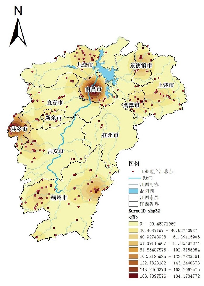 江西工业遗产密集度分布