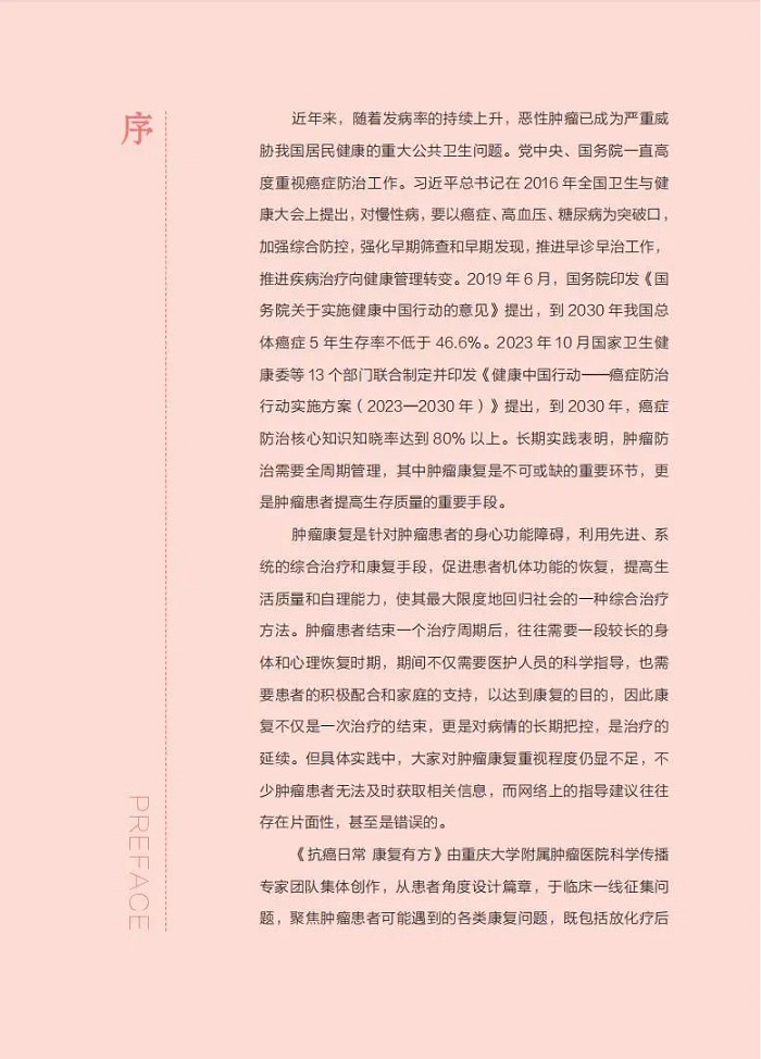 肿瘤防治,重点在“防”,核心在“筛”,关键在“康”。《抗癌日常 康复有方》围绕癌症患者康复管理进行专家辟谣,正本清源,对肿瘤患者科学康复具有很强的指导意义。