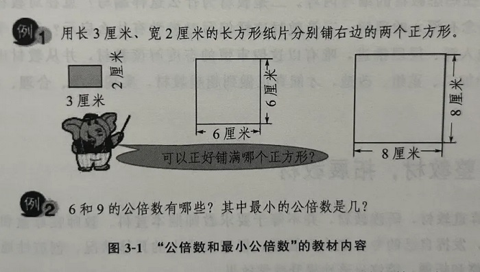 当然,也有教师通过反思改变教材所带来的问题,深刻认识到尊重教材的重要性。如图3-1小学五年级“公倍数和最小公倍数”的教材内容。
