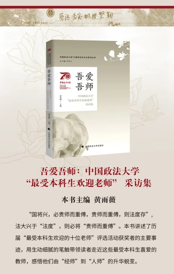 本文节选自中国政法大学出版社《吾爱吾师——中国政法大学“最受本科生欢迎老师”采访集》序言。