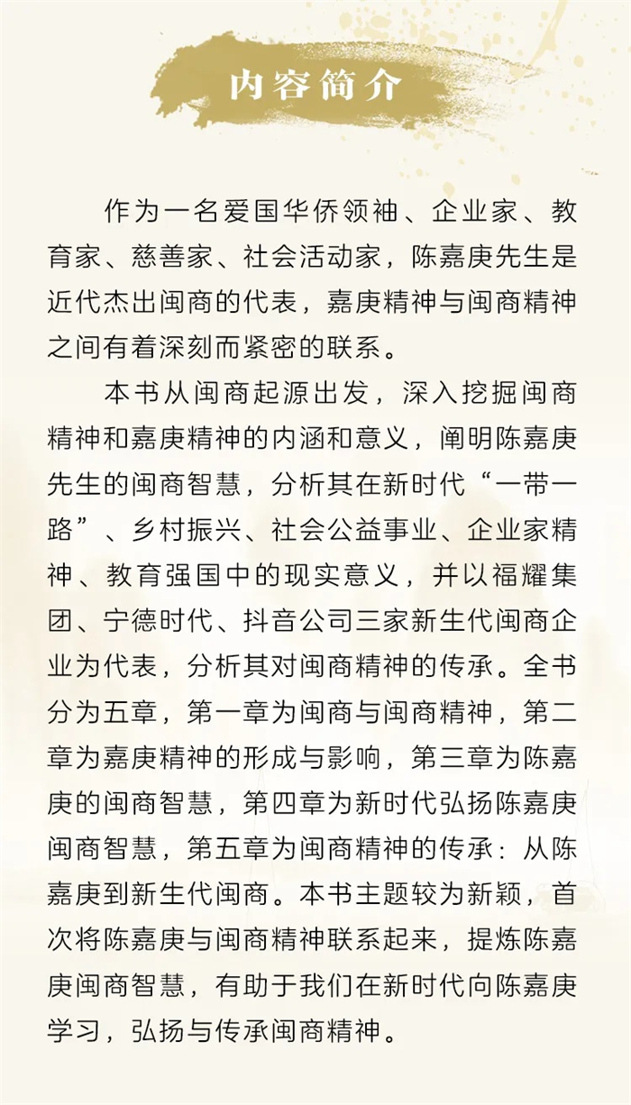 厦门大学出版社《陈嘉庚闽商智慧》——承前启后的闽商精神光芒