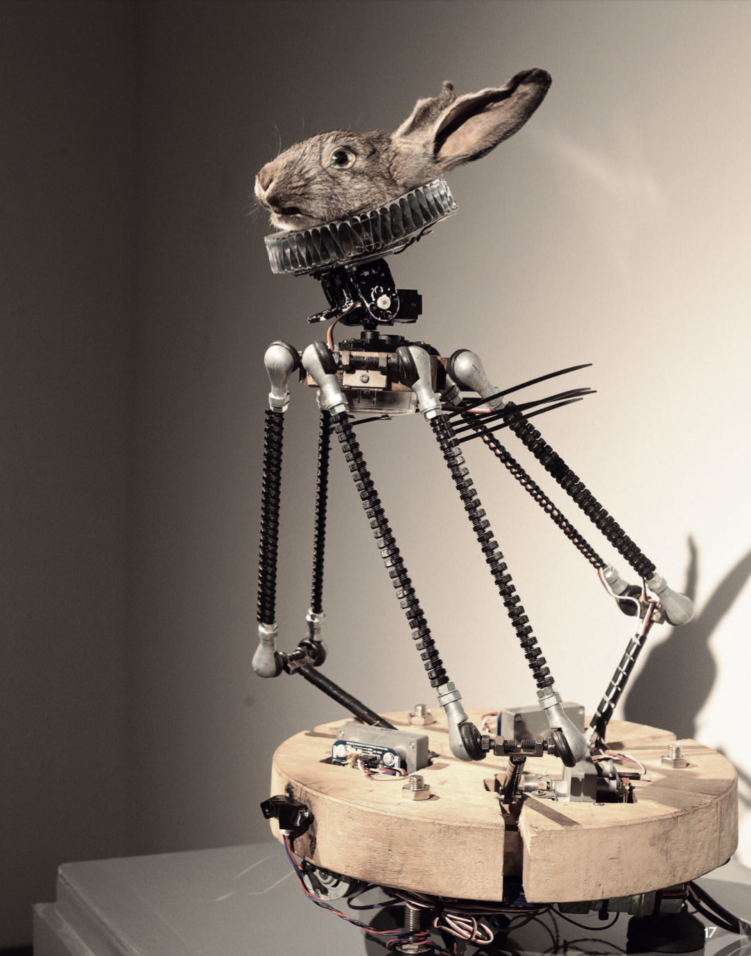 学生时代接触到了丁格利、考尔德等艺术家的作品,徐戈便萌生了“让雕塑动起来”的念头。在多年的学习和实践中,他不断尝试,用声音、光影、机械的律动创造人、动物、植物、家、神灵和宇宙万物,当这些或客观存在或主观遐思的意象与机械所代表的技术凝结在一起,一种奇妙的平衡悄然而至。作品《看不见的人》,是从月亮中走来的机械人,精密构造组成的动态人形,讲述着一个关于人在寻找自我存在的故事。动态机械的创作,就像是在创造生命一样令人着迷,但这并非徐戈的专属。从古代开始,人类就梦想着能创造独立运动的设备。在古埃及,祭司秘密操控着设置了原始自动机的神像,精巧的机械让人感觉伸向似乎会移动或说话,这让信众们叹然观止。“这种模拟生命的机制让作品与人拉近距离,我们似乎在他身上寻找某些共通的地方。某种意义上来说,古埃及的原始自动机有助于揭开最伟大的宗教奥秘之一:创造生命。其实我也一直有这样的执念,机械容易让人入迷,但是表达生命的存在意义是我更多关注的方面。当我成功完成一件动态作品时,就像赋予它生命,它成了我的另外一个存在。”