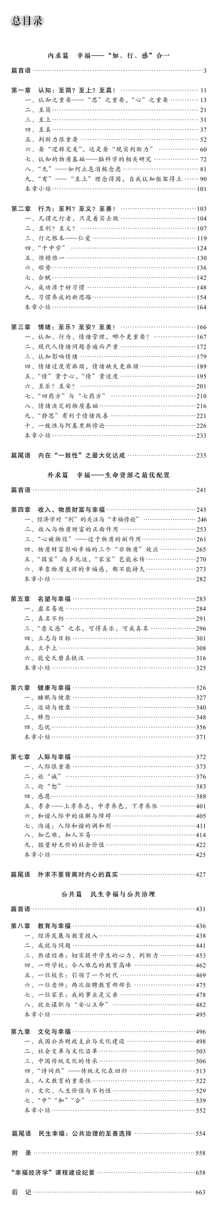 “公共篇”重点研究了教育与幸福、文化与幸福两大主题。在“教育与幸福”一章中,书中明确倡导:好教育,理当铸就更多的幸福人生。“文化与幸福”一章中明确指出:幸福与“意义感”直接相关,当一个人的日常时间能够被有“意义感”的事情填满时,他的情绪体验就不会出现太多问题。