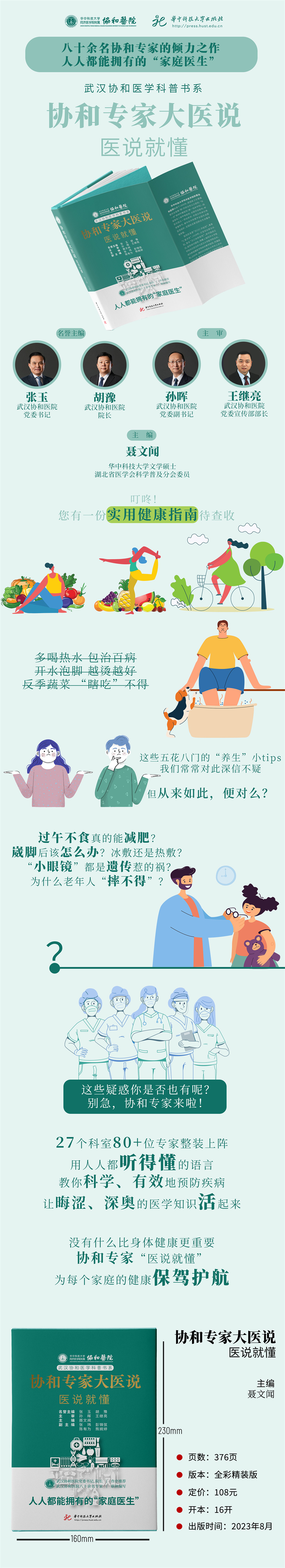 无法判断网络里的健康知识是否权威可靠?华中科技大学出版社联合华中科技大学同济医学院附属协和医院推出《协和专家大医说:医说就懂》,武汉协和医院八十余名专家联袂编写,为广大家庭打造的权威、实用医学科普书。