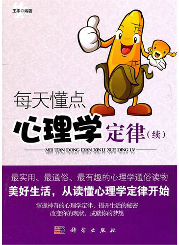 《每天懂点心理学定律(续) 》 定价:¥28.00 作者:王宇编著 出版社:科学出版社 出版时间:2011-5-1编辑推荐 本书是《每天懂点心理学定律》的后续产品。在生活和职场中,我们的快乐主要来自工作和生活的过程与效果,而这些过程与效果一定程度上都受到了心理定律的影响和制约。只不过我们没有去探究其背后的真正心理原因。实际上,如果懂得一些心理学上的基本定律知识,会对一个人的工作和生活产生正面的作用。本书紧紧围绕心理学定律中与生活息息相关的内容进行了心理知识的介绍。既有心理学知识的普及介绍,也有联系工作生活实际的具体应用。本书章节设置合理,对心理学定律的搜集整理较为完善,也较有新意,行文流畅,通俗易懂。 这是一本通俗易懂又不失准确深刻的心理学读物,语言通俗易懂,道理深刻实用。本书就社会交往、人际沟通、情绪管理、职场生存、成功法则等与人们日常生活和工作息息相关的内容,提供了相关心理学知识的普及介绍和具体应用。内容简介 本书对心理学领域里的心理定律进行了分类总结,分别从社交心理学、沟通心理学、爱情心理学、成功心理学、情绪心理学、职场心理学、经商关系心理学、人生心理学等八个方面,向读者朋友们介绍了心理学在工作和生活里的各个方面具体运用。本书不仅是你做好本职工作的重要导向,更是促你步入成功殿堂的心理学通俗读物。 阅读《每天懂点心理学定律(续)》,你能够轻松掌握心理学的精髓,它能够帮助你更好地认知自我,发掘潜力,解决生活中出现的常见心理问题,从而拥有健康的身心、幸福的家庭、出色的工作、和谐的人际关系和快乐的生活。