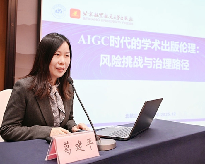 葛建平以《AIGC时代的学术出版伦理:风险挑战与治理路径》为题,从跨学科视角展开分析,认为AIGC时代学术出版伦理风险可分为主体、内容、生态三个层面,并提出四项治理路径:一是完善版权、出版、数据管理相关法律体系;二是构建符合学术出版特点的人工智能应用伦理准则;三是加强人机协同,优化检测工具与审核机制;四是强化顶层设计,推动出版机构、科研院所协同治理。