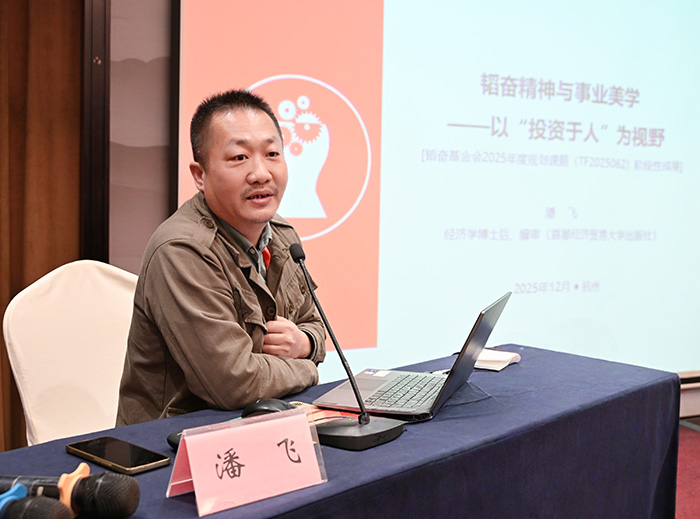 潘飞以《韬奋精神与事业美学——以“投资于人”为视野》为题,提出学术出版工作应兼具价值与效用双重导向,在价值层面秉持“求是向美”理念,坚守真理追求与人文情怀;在效用层面践行“文质兼美”标准,兼顾内容质量与传播效果;在社会层面追求“美美与共”目标,推动学术成果惠及大众。