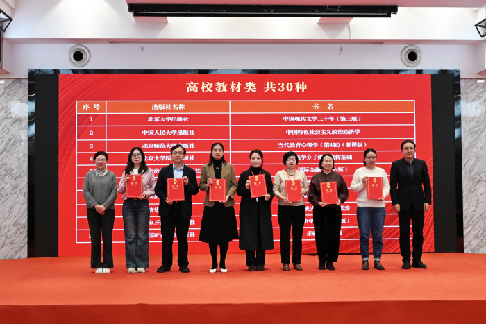 会上,发布了2025年度百种“大学出版好书”公益推荐书目,84家大学出版社100种(其中主题出版22种、高校教材30种、学术著作30种、大众图书18种)图书获得推荐。大学版协理事长李永强,副理事长王凤廷、王焰、孙玉、禇超孚、陈晓阳,秘书长代根兴及部分大学出版社领导为获得 2025年度百种“大学出版好书”的图书编辑及代表颁发了证书。
