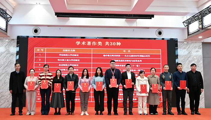 大学版协领导和部分出版社领导为入选2025年度百种“大学出版好书”的图书编辑颁发证书