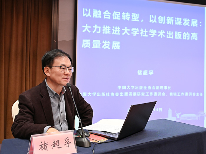 褚超孚作《以融合促转型,以创新谋发展:大力推进大学社学术出版的高质量发展》报告