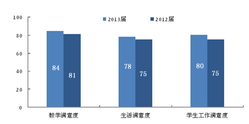 麦可思调查发现,2013年“计分卡”的5项指标,相对于前两年有4项呈现增长态势,只有专业相关度一项保持稳定。
