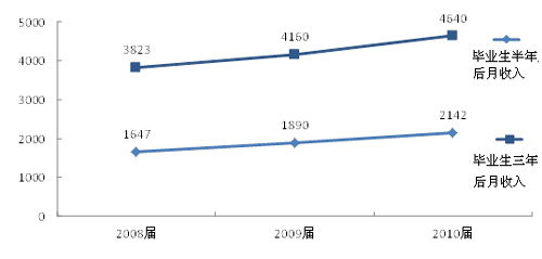 图2 高职毕业生半年后及三年后的月收入(单位:元)