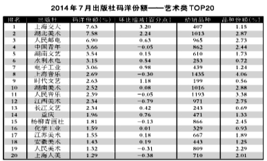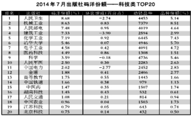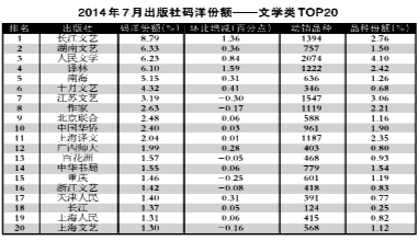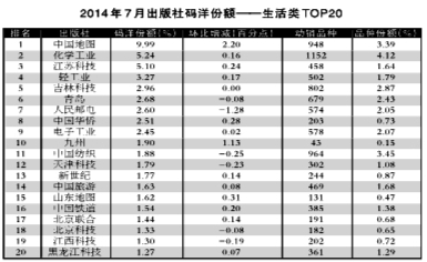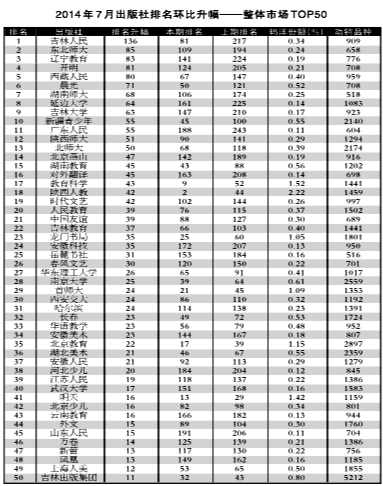 2014年7月出版社份额排行榜、排名升幅榜