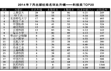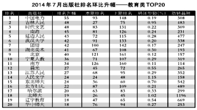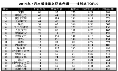 2014年7月出版社份额排行榜、排名升幅榜 - 业界观察 - 中国高校教材图书网