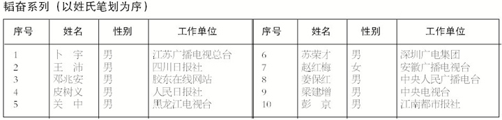 第十三届长江韬奋奖获奖者名单