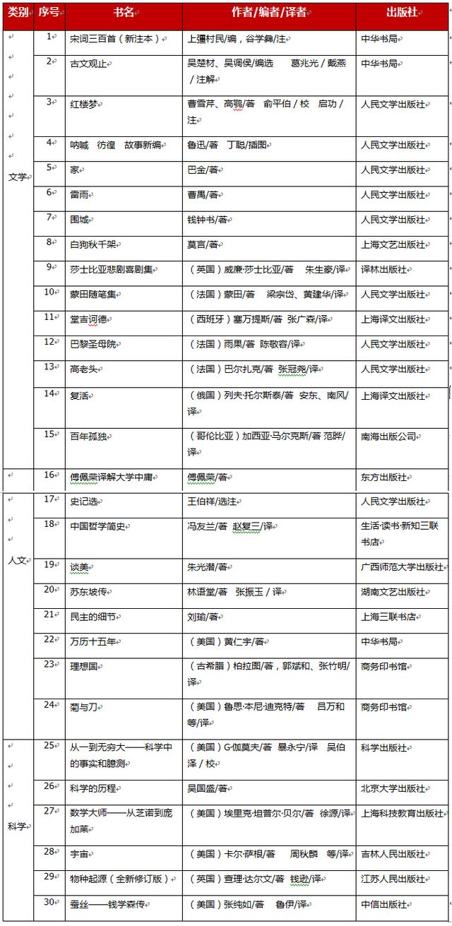 (基础书目表,30种)