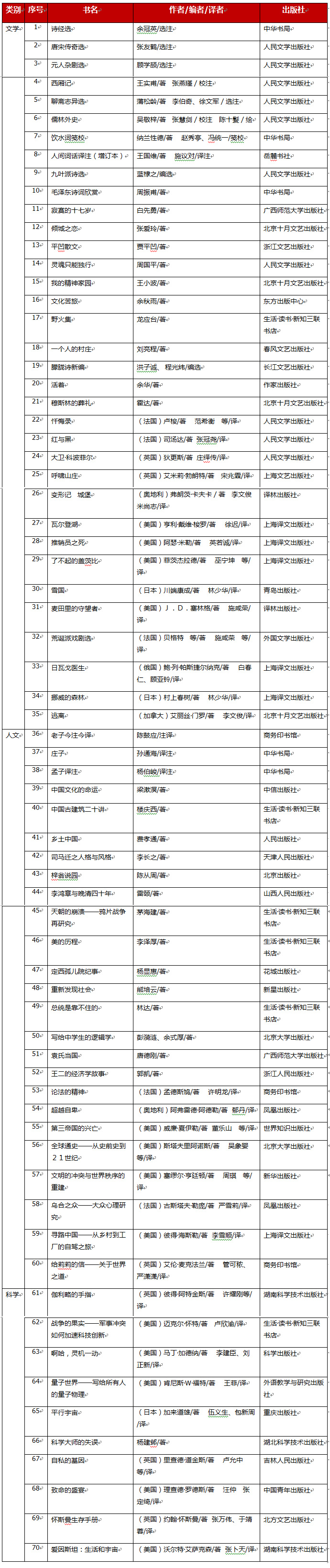 (推荐书目表,70种)