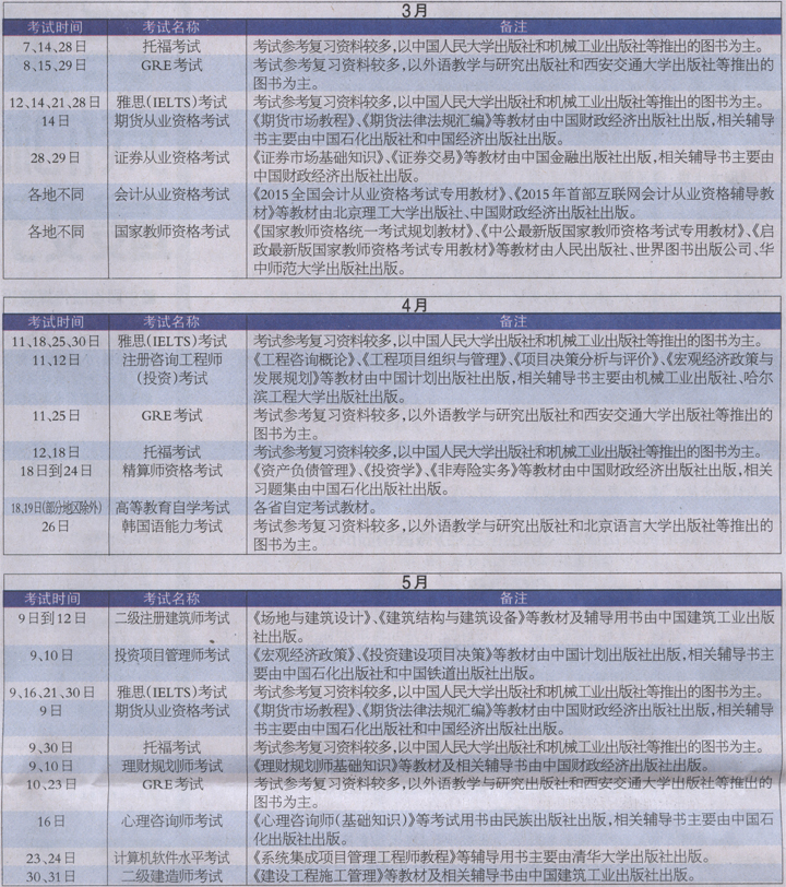 2015年3~9月考试日历 - 招生考试 - 中国高校教材图书网
