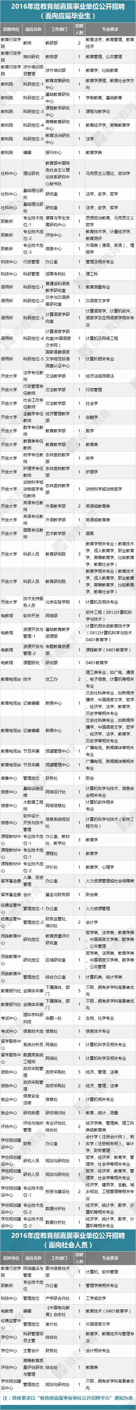 近日,2016年度教育部部分直属事业单位面向普通高等学校应届毕业生和社会在职人员统一公开招聘啦!