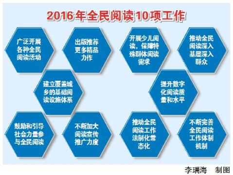 通知部署的2016年全民阅读10项工作包括: