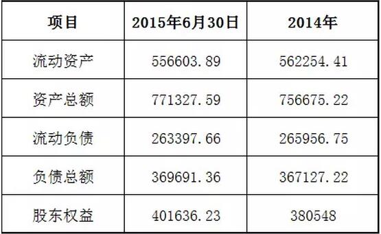 表一 合并资产负债表主要数据(单位:万元)