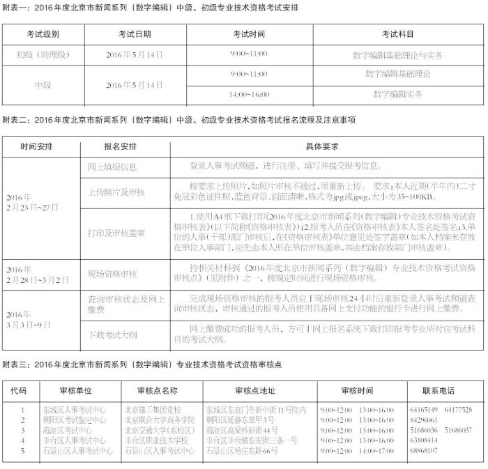 关于2016年度北京市新闻系列(数字编辑)中级、初级专业技术资格考试有关问题的通知
