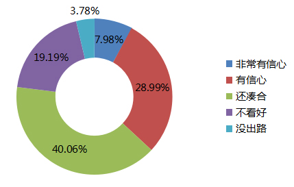 相对薪酬满意度的小幅改善,出版从业人员对行业前景的信心度提升要更为明显。在回收的有效问卷中,出版从业人员对出版业前景“非常有信心”的占比达到7.98%,比上年度提高4.79个百分点;“有信心”的占比为28.99%,比上年度提高1.51个百分点;认为“还凑合”的占比为40.06%,比上年度减少2.32个百分点;“不看好”的占比19.19%,比上年度减少4.04个百分点;认为“没出路”的占比3.78%,与上年度基本持平。