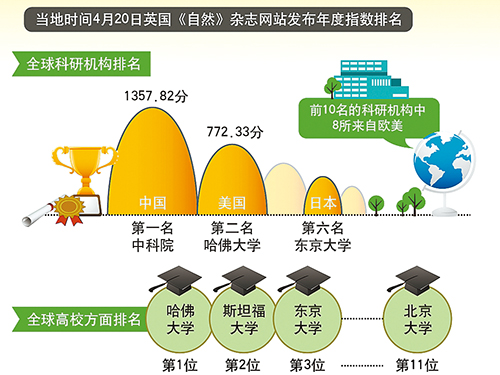 该榜单显示,中国科学院是位居世界首位的科研机构,并自2012年指数编制以来持续位列第一。但从整体来看,欧美等传统科研强势地区仍然优势明显。除中科院和排名第6位的东京大学外,前10名的科研机构中另外8所全部来自欧美。
