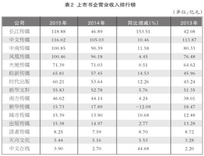 2015年是“十二五”的收官之年,不少上市书企积极适应新常态要求,稳步发展传统业务,大力拓展新兴业务,持续推进转型升级,兼顾外延扩张与内涵发展,并在主业提升、数字化转型、品牌打造和管理变革等工作中取得显著成果,实现了社会效益与经济效益双丰收。