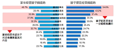 图6 儿童阅读读物类型 家长希望孩子阅读的 孩子愿意经常阅读的