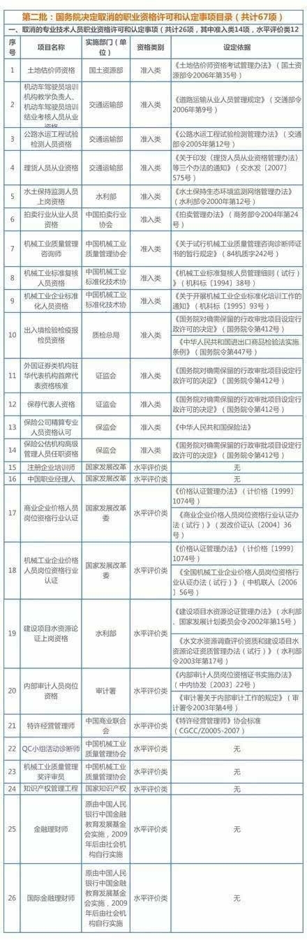 国务院7月15日召开常务会议,决定再取消一批职业资格许可和认定事项。